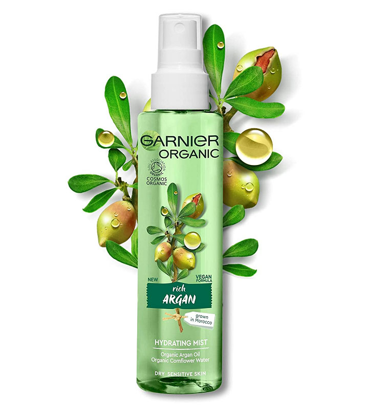 اسپری آبرسان صورت گارنیه Garnier Rich Argan حاوی 99 درصد عصاره های طبیعی جهت رطوبت رسانی سریع و حفظ رطوبت و شاداب کنندگی صورت می باشد. اسپری آبرسان گارنیه حاوی روغن آرگان ارگانیک بدست آمده از مراکش جهت آبرسانی و لطافت پوست و همچنین آب گل گندم ارگانیک جهت طراوت بخشی و مراقبت ویژه از پوست های حساس می باشد. آب گل گندم حاوی ماده تانین با خواص مفید آنتی اکسیدانی و آنتی باکتریال است و برای تسکین و محافظت پوست بسیار مناسب می باشد.