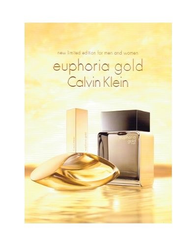 عطر کلوین کلین ایفوریا گلد مردانه - Calvin Klein Euphoria Gold معرفی شده در سال 2014 توسط برند Calvin Klein دارای رایحه گرم و تند می باشد. رایحه آغازین این عطر شامل نت های لیمو ترش - زنجبیل است که در میانه مسیر بویایی به رایحه دارچین - ریحان - عسل می رسد. این نت ها در انتها با رایحه وانیل - کهربا - نعناع هندی تکمیل می شود.