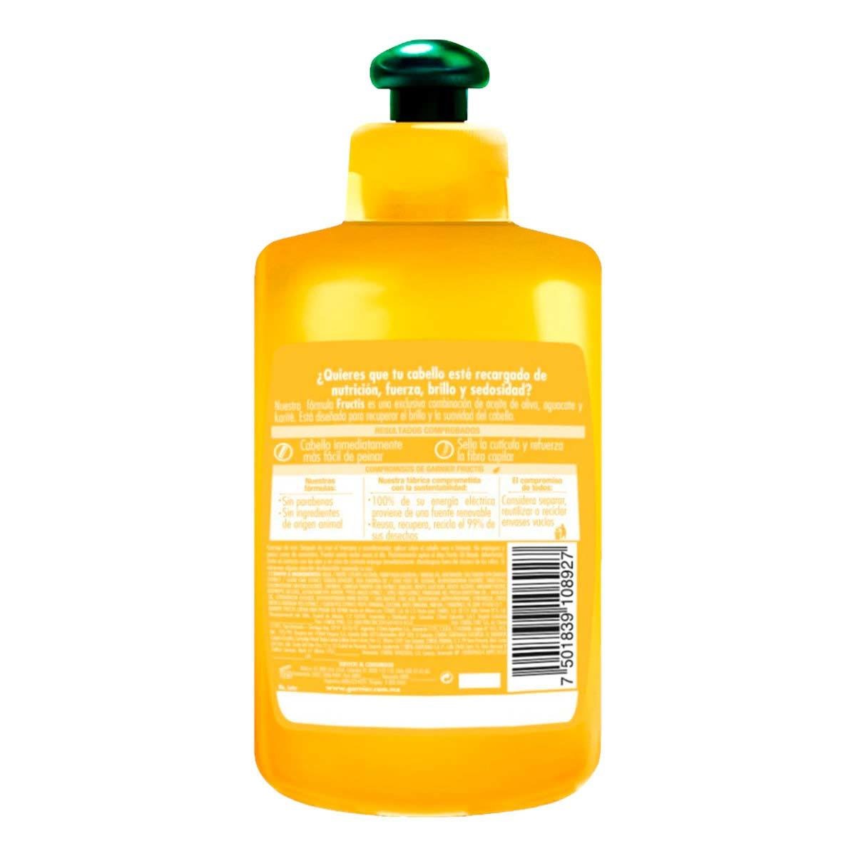 فروکتیس گارنیه حاوی روغن زیتون جهت نرمی و لطافت بخشی مو، روغن آووکادو جهت صافی و منظم کردن موها و شی باتر جهت ترمیم و احیای سلامتی موها می باشد. عصاره های مغذی قوی کرم موی گارنیه به همراه فرمول وگن و بدون پارابن موهایی نرم، ابریشمی و درخشان را به ارمغان می آورد.