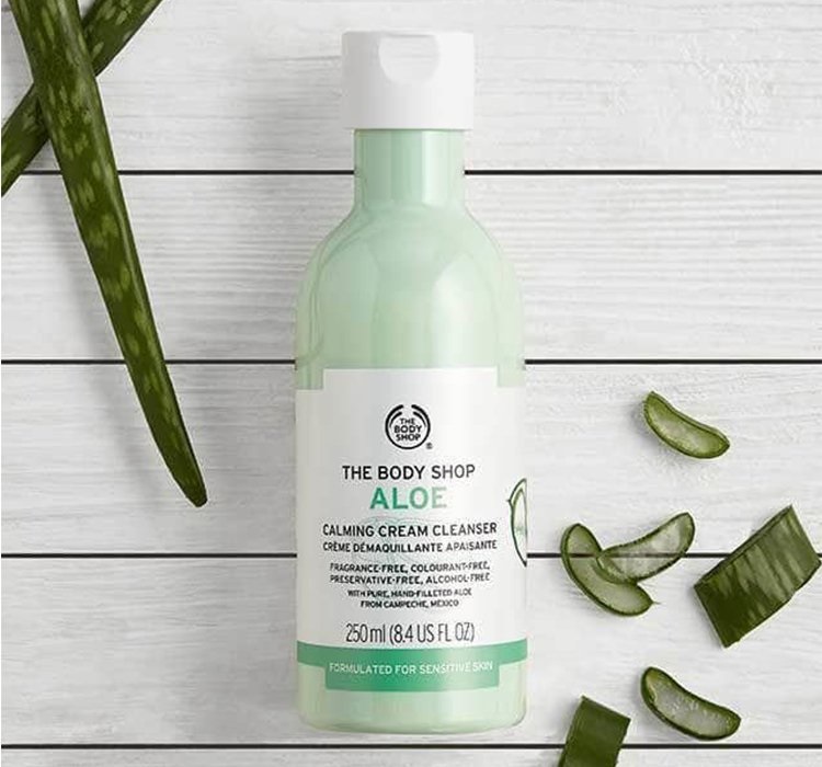 کرم پاک کننده آلوئه ورای بادی شاپ Body Shop Aloe Calming دارای فرمول باکیفیت جهت پاک کنندگی ملایم همراه با رطوبت رسانی و مراقبت ویژه از پوست های حساس می باشد. کرم پاک کننده بادی شاپ حاوی عصاره ارگانیک آلوئه ورای بدست آمده از برنامه تجارت عادلانه از مکزیک با خواص آرامش بخشی، تسکین دهندگی و حفظ رطوبت و شادابی پوست است. فرمول پاک کننده آلوئه ورای بادی شاپ به صورت کرم آب شونده هنگام ماساژ روی صورت است در نتیجه حس لطیفی همراه با پاک کنندگی و جذب آلودگی های پوست را به ارمغان می آورد. این ترکیب بدون رایحه، بدون رنگ، بدون الکل و بدون مواد نگهدارنده برای پوست های حساس گزینه ای ایده آل محسوب می شود.