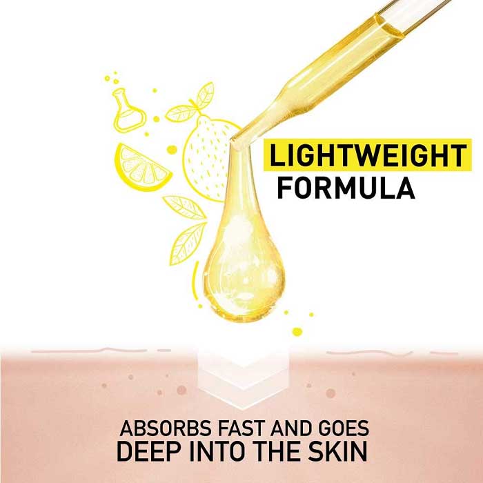 سرم ضدلک و روشن کننده گارنیه Garnier Light Complete حاوی کنستانتره قوی ویتامین C به میزان 30 برابر بیشتر جهت محو کردن سریع لک، جای جوش و نقاط تیره پوست در 3 روز می باشد. سرم ویتامین C گارنیه دارای فرمول سبک با جذب شوندگی سریع است و روشن کننده لک ها از لایه های عمقی پوست می باشد، این عملکرد باعث کاهش تراکم، اندازه و رنگ لک ها و نقاط تیره می شود. سرم ضدلک گارنیه با عصاره لیمو جهت افزایش شفافیت پوست همراه شده است و برای انواع پوست از جمله پوست های حساس نیز مناسب است.