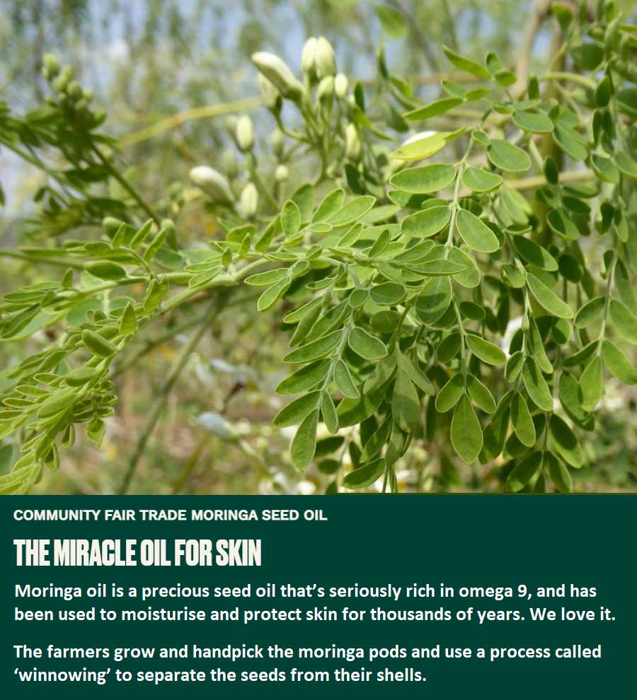 کرم دست مورینگا بادی شاپ Body Shop Moringa دارای فرمول سبک و ژل کرمی با جذب شوندگی سریع جهت آبرسانی فوری و نرمی و لطافت بخشی دست همراه با رایحه دلپذیر گلی مورینگا می باشد. کرم دست بادی شاپ حاوی روغن دانه مورینگا (گز روغنی) دستچین شده توسط برنامه تجارت عادلانه از کشور رواندا است، مورینگا که هزاران سال به عنوان روغن جادویی شناخته می شود سرشار از امگا 9 با خواص رطوبت رسانی و محافظت کنندگی پوست است. فرمول سبک و غیر چرب کننده و رایحه گلی لطیف، پوست دستی نرم و ابریشمی را به ارمغان می آورد.