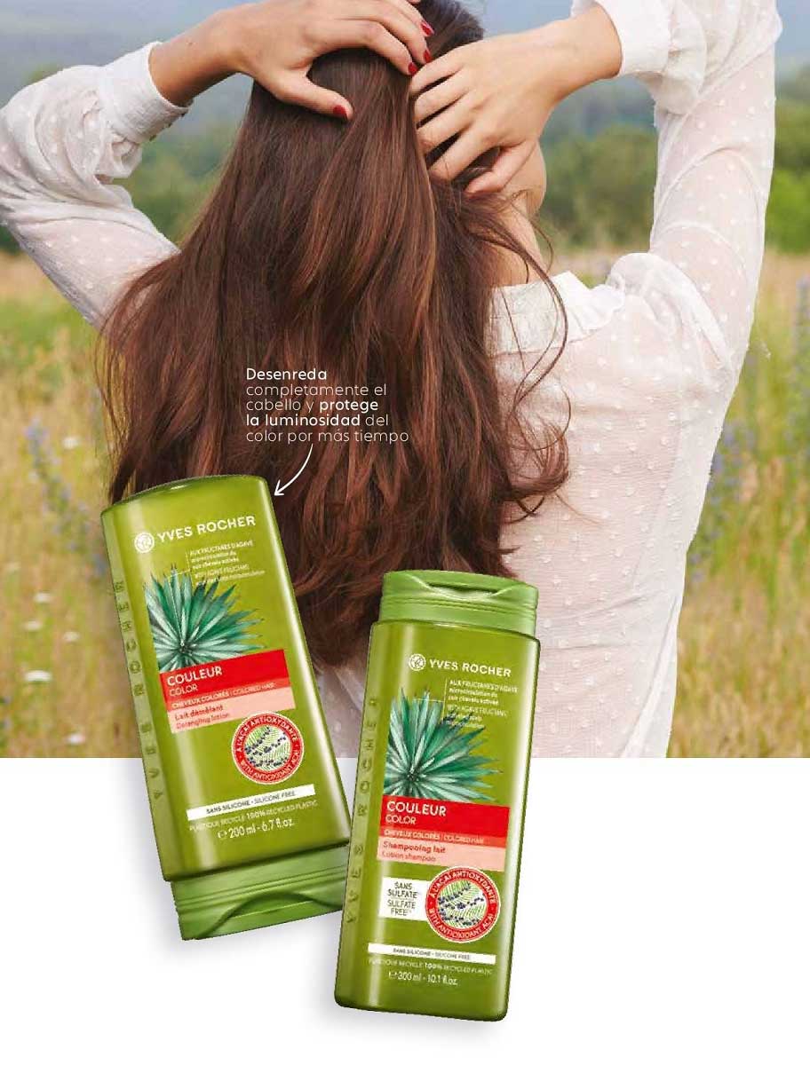 نرم کننده موهای رنگ شده ایوروشه Yves Rocher Color حاوی 91 درصد عصاره های گیاهی جهت مراقبت و درخشندگی موهای رنگ شده می باشد. نرم کننده کالر ایوروشه حاوی عصاره میوه آسای بری غنی از آنتی اکسیدان جهت تقویت شدت رنگدانه های مو و ماندگاری کیفیت و جلوگیری از کدر شدن آن می باشد، فرمول کرمی مغذی نرم کننده کالر ایوروشه به مراقبت هر چه بیشتر سلامتی موهای رنگ شده کمک می کند. علاوه بر این عصاره کلیدی دیگر این فرمول عصاره ارگانیک گیاه آگاو است که گردش خون کف سر را دو برابر افزایش می دهد و موجب رشد موهایی مستحکم تر می شود. آگاو گیاهی شبیه کاکتوس و آلوئه ورا است که در مکزیک پرورش داده می شود و غنی از فروکتوز می باشد.