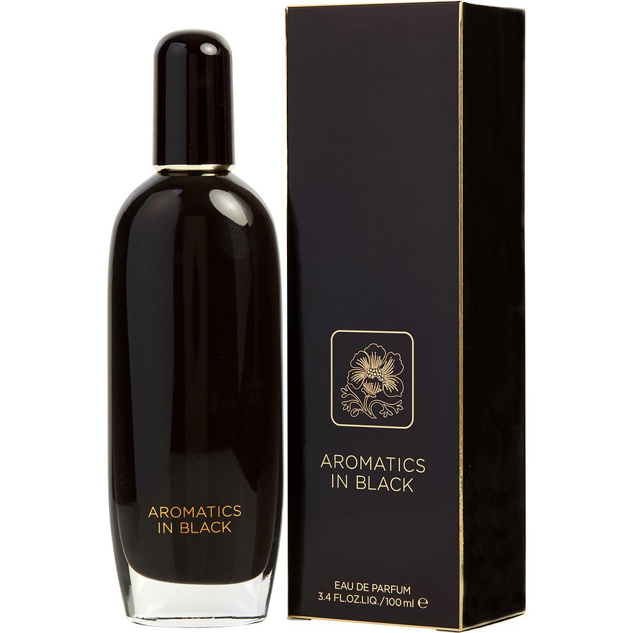 عطر کلینیک آروماتیک این بلک Clinique Aromatics in Black معرفی شده در سال 2015 توسط برند Clinique دارای رایحه گرم و شیرین می باشد. رایحه آغازین این عطر شامل نت های آلو - گریپ فروت - ترنج است که در میانه مسیر بویایی به رایحه بهارنارنج - گل اوسمانتوس - گل یاس می رسد. این نت ها در انتها با رایحه دانه تونکا - خس خس - صمغ مر تکمیل می شود.