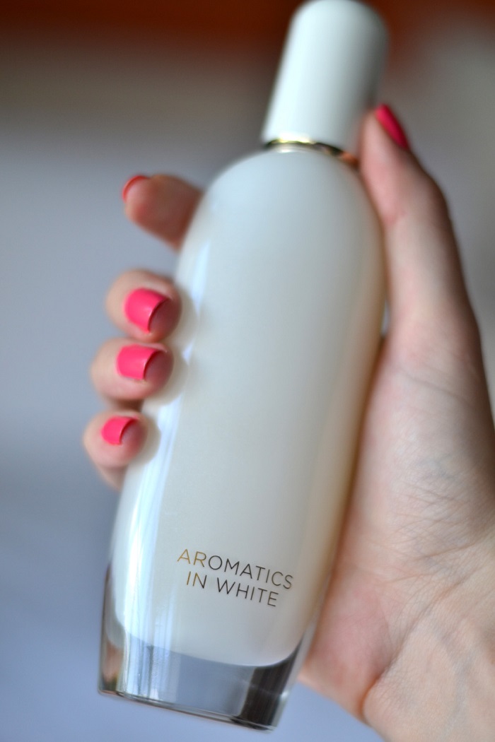 عطر کلینیک آروماتیک این وایت Clinique Aromatics in White معرفی شده در سال 2014 توسط برند Clinique دارای رایحه گرم و تند و شیرین می باشد. رایحه آغازین این عطر شامل نت های برگ بنفشه - گل لابدانیوم (گل آفتابی) - فلفل سیچوان است که در میانه مسیر بویایی به رایحه گل رز - شکوفه پرتقال - نعناع هندی می رسد. این نت ها در انتها با رایحه وانیل - دانه تونکا - مشک - کهربا تکمیل می شود.