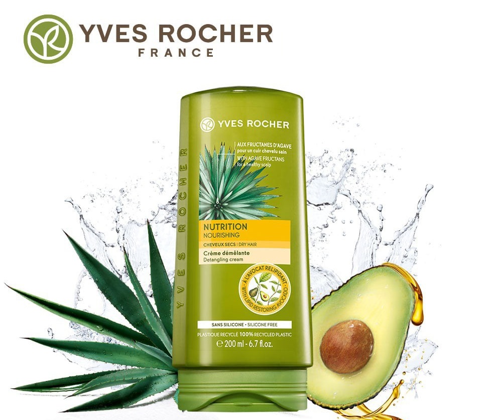 نرم کننده و تغذیه کننده موی ایوروشه Yves Rocher Nutrition حاوی عصاره های طبیعی از جمله روغن آووکادو جهت تغذیه عمقی، آبرسانی، منظم کردن و رفع خشکی و شکنندگی موهای خشک و نیازمند تغذیه می باشد. نرم کننده مغذی ایوروشه دارای فرمول کرمی جهت احیای نرمی و سلامتی موهای رطوبت از دست داده است و درخشندگی طبیعی موها را باز می گرداند. علاوه بر این عصاره کلیدی دیگر این فرمول عصاره ارگانیک گیاه آگاو است که گردش خون کف سر را دو برابر افزایش می دهد و موجب رشد موهایی مستحکم تر می شود. آگاو گیاهی شبیه کاکتوس و آلوئه ورا است که در مکزیک پرورش داده می شود و غنی از فروکتوز می باشد.