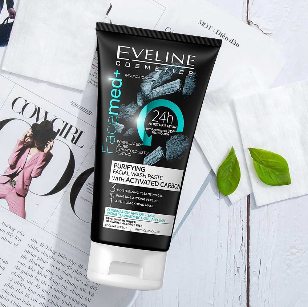ژل شوینده صورت پوست چرب و مختلط اولاین Eveline Facemed دارای سه عملکرد پاک کنندگی پوست های چرب، مختلط و جوش زا و پاکسازی جوش های سرسیاه است که قابل استفاده به عنوان پاک کننده صورت، لایه بردار و ماسک می باشد. فیس واش اولاین حاوی سالیسیلیک اسید به عنوان آنتی باکتریال جهت مقابله با جوش و جلوگیری از ایجاد جوش، خاک رس کائولین جهت جذب چربی اضافی و ناخالصی های پوست و عصاره نعناع جهت شاداب کنندگی پوست می باشد. علاوه بر این ذغال فعال شارکل جهت سم زدایی و متعادل سازی ترشح چربی سبوم و مات کنندگی پوست است که همراه با مواد موثر رطوبت رسان 24 ساعته، محصولی کامل را حاصل شده است.
