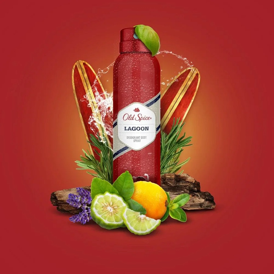 اسپری دئودورانت آقایان اولد اسپایس لاگون Old Spice Lagoon محافظت کننده 48 ساعته خشکی و تازگی زیر بغل به همراه تکنولوژی مقاومت در برابر محو شدن رایحه جهت حس شادابی و تازگی طولانی مدت می باشد. اسپری دئودورانت لاگون همچنین حاوی رایحه ترنج، لیمو، برگ لیمو، لاوندر و گیاهان سبز است و طبق معرفی اولد اسپایس اگر کسی را دیدید که بوی خوبی می دهد و سردرگم است بدانید احتمالا مشتری جدید لاگون است.