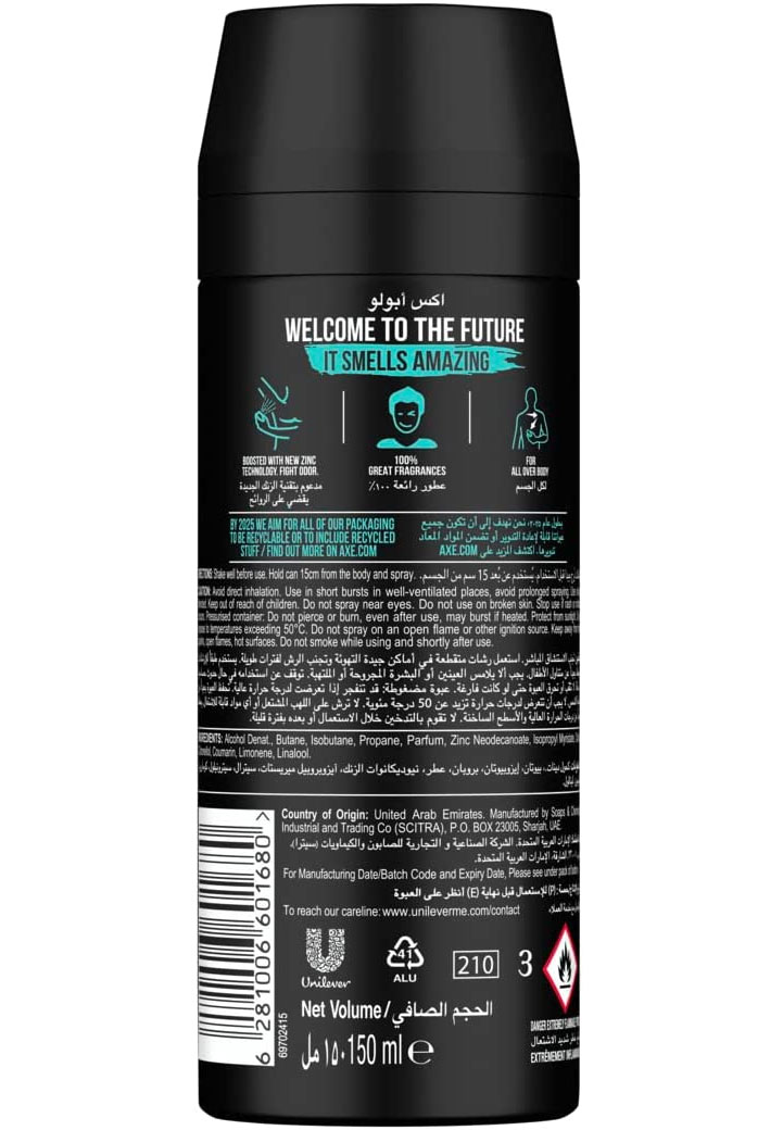 اسپری دئودورانت آکس آپولو Axe Apollo حجم 150 میلی لیتر