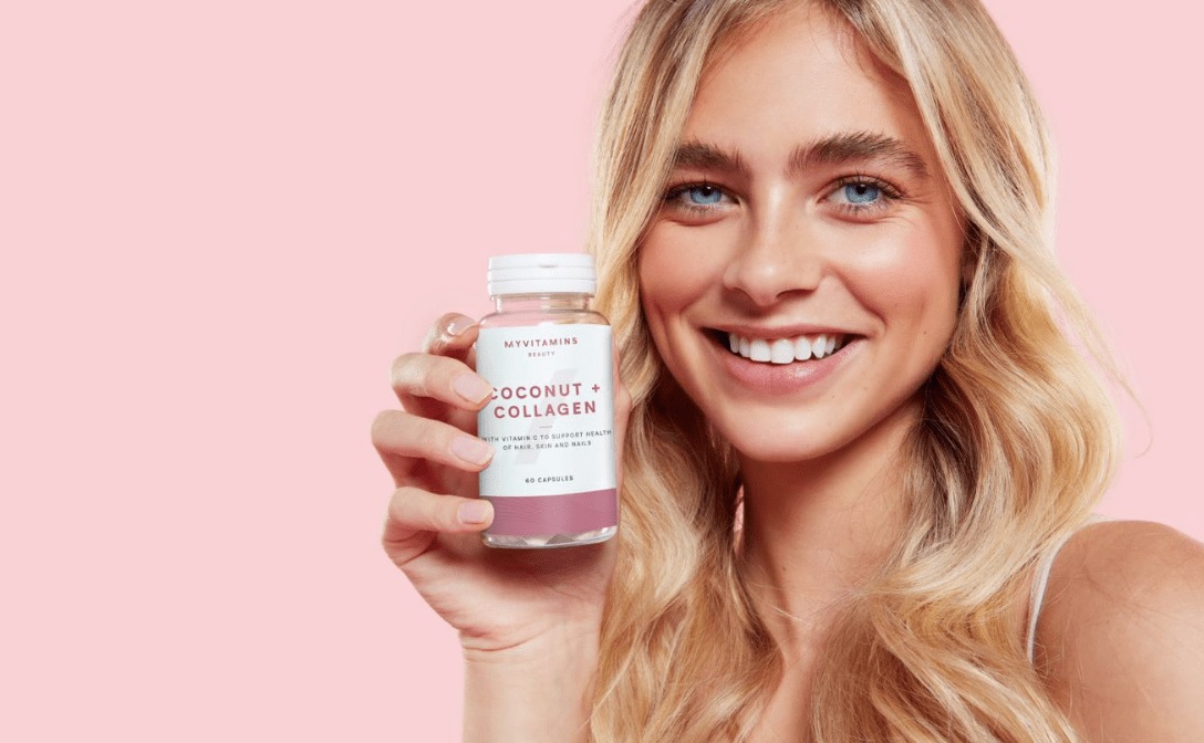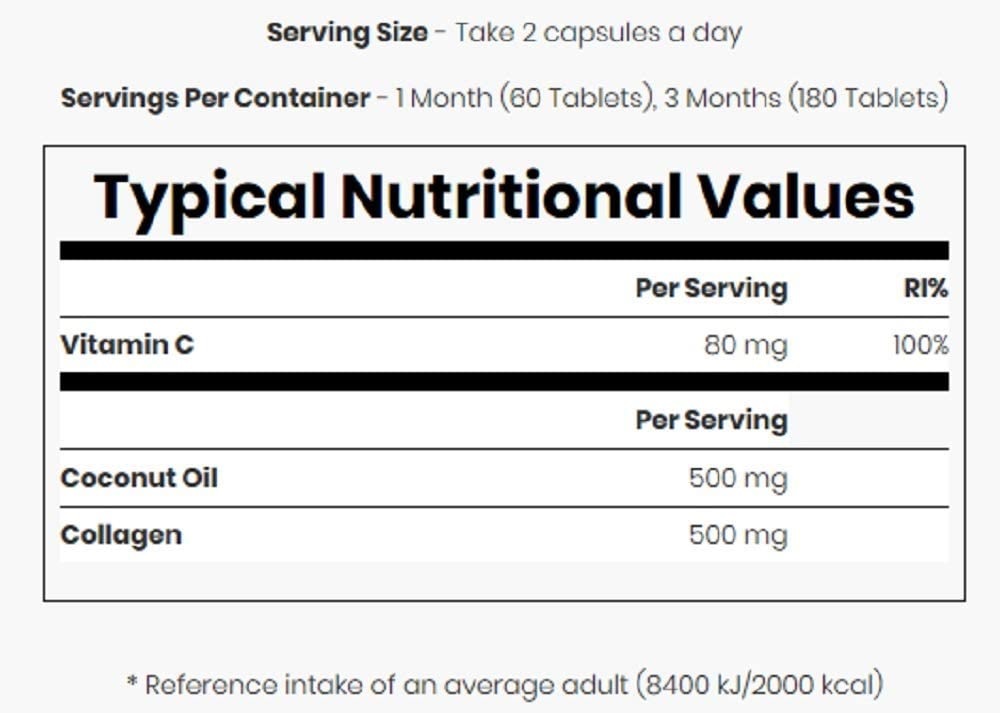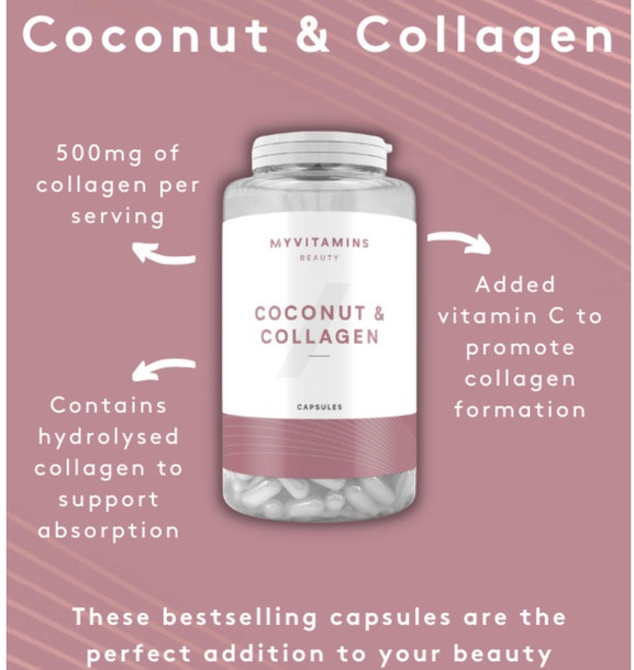 مکمل تقویت پوست و موی نارگیل و کلاژن مای ویتامینز Myvitamins Coconut Collagen حاوی 500 میلی گرم کلاژن هیدرولیز شده جهت تقویت کیفیت و صافی پوست به همراه روغن نارگیل به عنوان منبع طبیعی تری گلیسیرید است که با ویتامین سی جهت حمایت از تولید کلاژن همراه شده است. با افزایش سن روند تولید کلاژن به عنوان جزء اصلی تشکیل دهنده پوست کاهش می یابد و در نتیجه پوست دچار شلی و افتادگی می شود، مکمل نارگیل و کلاژن با تقویت سطوح کلاژن با روند پیری مقابله کرده و بهبود کیفیت پوست و مو کمک می کند.