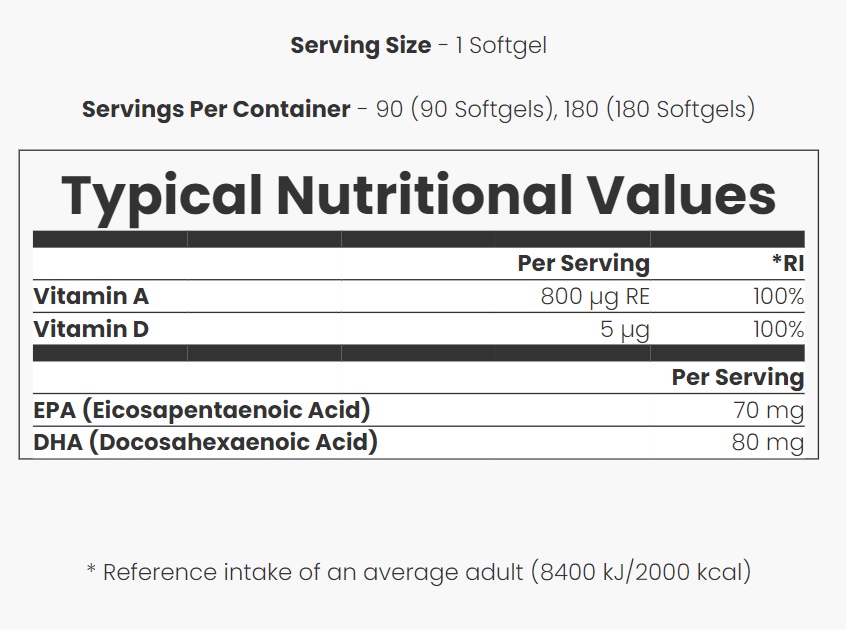مکمل روغن کبد ماهی مای ویتامینز این اطمینان را می دهد که به اندازه کافی اسیدهای چرب ضروری روزانه را در اختیار داریم.