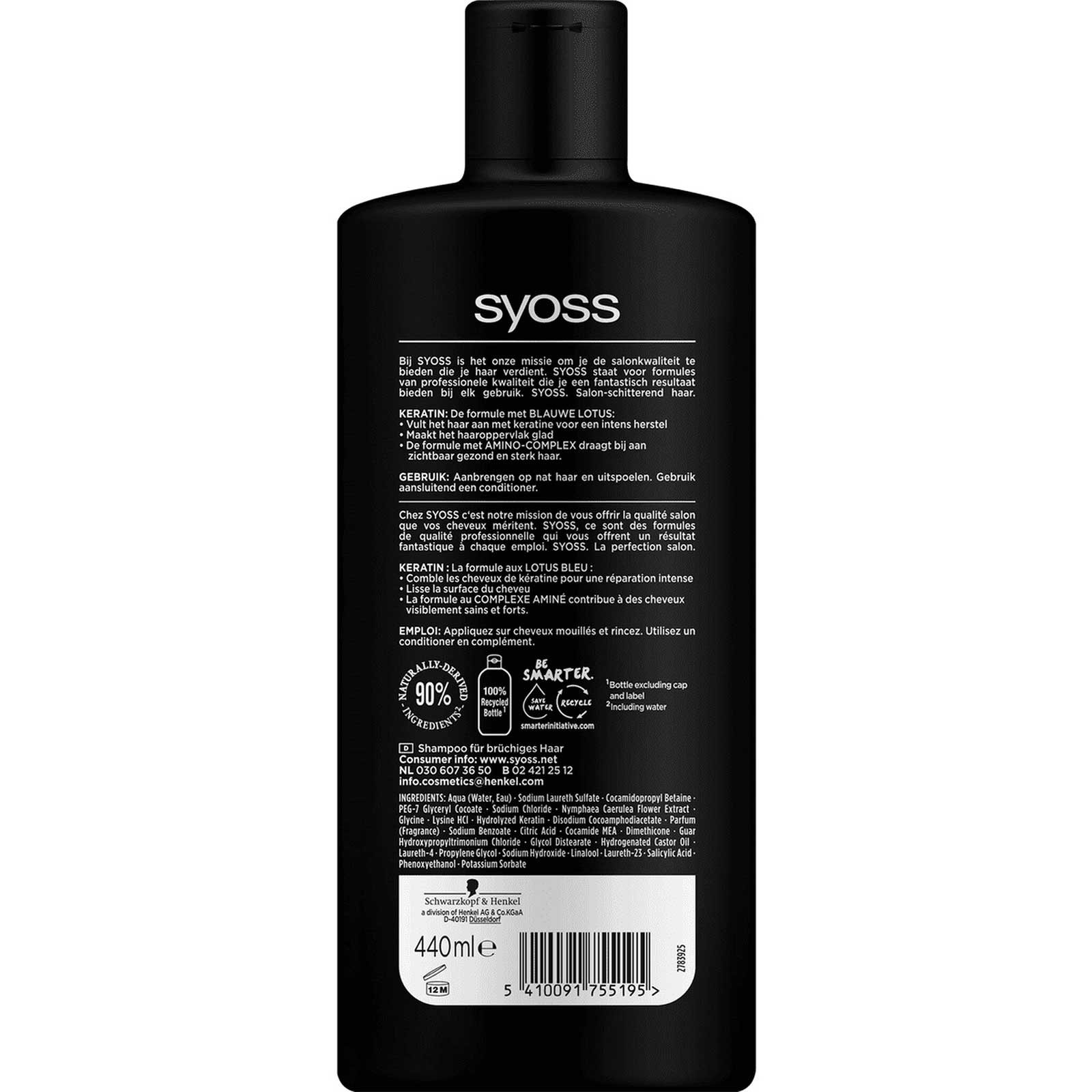 شامپو کراتین ترمیم کننده و صاف کننده سایوس سری جدید Syoss Keratin حجم 440 میلی لیتر