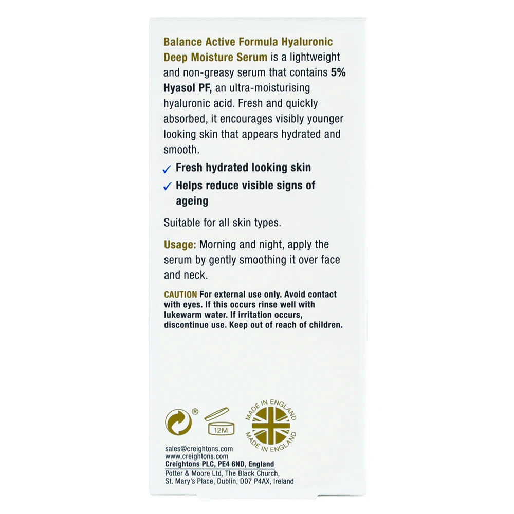 سرم آبرسان هیالورونیک اسید بالانس اکتیو فرمولا Balance Hyaluronic دارای فرمول سبک و طراوت بخشی و حاوی 5 درصد کنستانتره هیالورونیک اسید در کمپلکس Hyasol PF جهت آبرسانی قوی پوست می باشد. هیالورونیک اسید به صورت طبیعی در بافت پوست قرار دارد و توانایی جذب رطوبت به مقدار 1000 برابر وزن ملکولی خود را دارا می باشد. این قابلیت باعث می شود رطوبت در میان خطوط پوست پر شود و چروک ها کاهش یابد. این فرمول باعث شادابی روز به روز پوست، افزایش انعطاف پذیری و مقابله با نشانه های افزایش سن می شود.