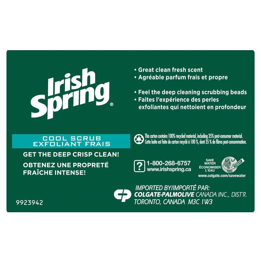 صابون خنک کننده و اسکراب دار ایریش اسپرینگ Irish Spring Cool Scrub محصولی باکیفیت جهت پاک کنندگی عمیق و احساس خنکی و تازگی طولانی مدت پوست است و یادآور حضور در طبیعت باطراوت، خنک و سبز ایرلند می باشد. صابون کول اسکراب ایریش اسپرینگ حاوی ذرات اسکراب بدست آمده از نمک صخره های سلتیک جهت پاک کنندگی و نوسازی پوست است و همچنین حاوی مواد موثر دئودورانت 12 ساعته جهت از بین برندن باکتری های ایجاد کننده بوی بد بدن است. این فرمول به همراه رایحه تازه و خنک احساس پوستی تمیز و شاداب را به ارمغان می آورد.