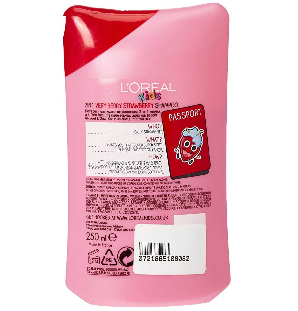 شامپو 2 در 1 کودک لورال رایحه توت فرنگی LOreal Very Berry دارای فرمول بسیار ملایم و حاوی شامپو و نرم کننده با رایحه خوشمزه بسیار میوه ای است. شامپو کودک لورال چشم را نمی سوزاند و موها را فوق العاده نرم و خوشبو می کند.