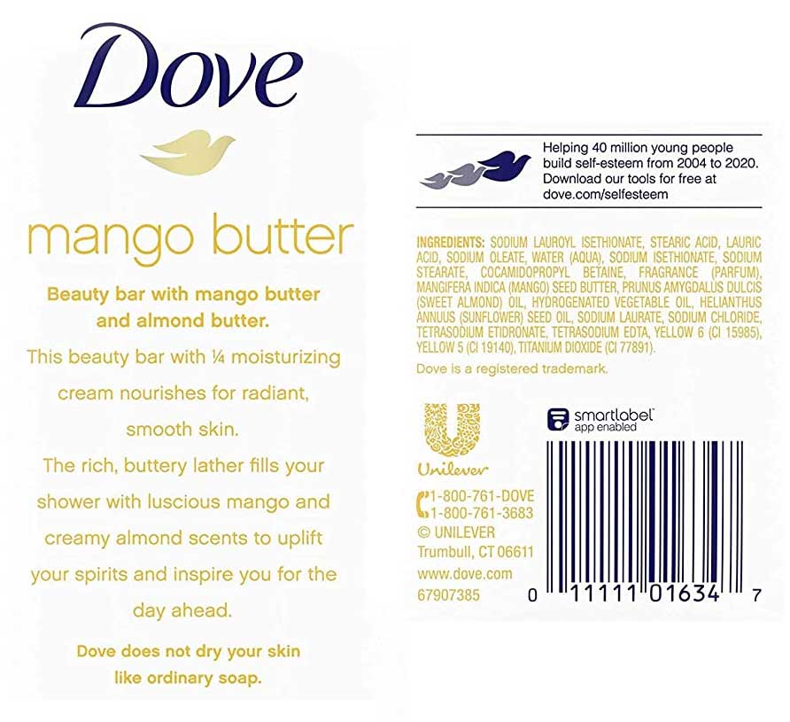 صابون انبه داو Dove Mango Butter دارای فرمول غنی و حاوی کره انبه و کره بادام جهت تغذیه و رطوبت رسانی مجدد پوست و رساندن مواد مغذی مورد نیاز پوست می باشد. این فرمول ضمن رفع خشکی پوست، احساس پوستی فربه تر با لطافت ماندگار پس از خشک کردن بدن را به همراه دارد. صابون داو حاوی یک چهارم کرم مرطوب کننده داو بوده و از خشکی پوست جلوگیری کرده و به نرمی و لطافت پوست کمک بسزایی می کند.