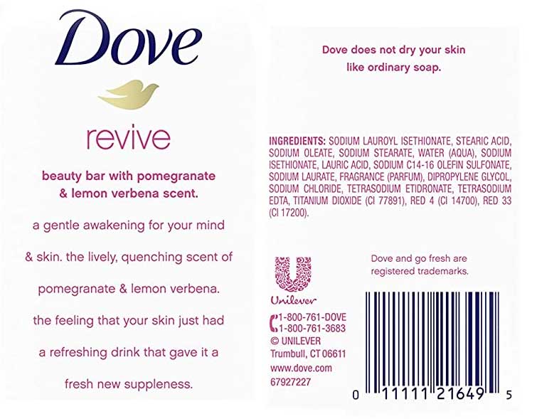 صابون انار و به لیمو داو Dove Revive Pomegranate حاوی عصاره انار جهت احیاکنندگی پوست با خواص آنتی اکسیدانی بوده و دارای رایحه دلپذیر به لیمو می باشد. صابون داو حاوی یک چهارم کرم مرطوب کننده داو بوده و از خشکی پوست جلوگیری کرده و به نرمی و لطافت پوست کمک بسزایی می کند.