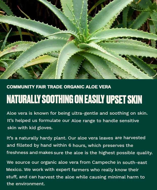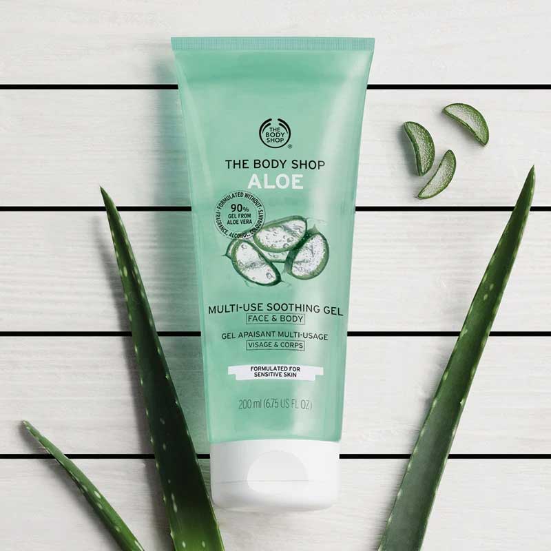 ژل تسکین دهنده و آبرسان بادی شاپ Body Shop Aloe Soothing حاوی ژل ارگانیک آلوئه ورای بدست آمده از برنامه تجارت عادلانه از مکزیک با خواص تسکین دهندگی پوست های حساس، آبرسانی، خنک کنندگی، حفظ رطوبت و شاداب کنندگی پوست می باشد. ژل آلوئه ورای بادی شاپ به چند روش برای صورت و بدن قابل استفاده می باشد، می توان آن را به عنوان رطوبت رسان روزانه صورت استفاده کرد یا به عنوان ماسک شب لایه ای از آن را شب قبل از خواب بر روی صورت ماساژ داد، در طول استراحت رطوبت رسانی به طور کامل انجام می شود و صبح پوستی لطیف و شاداب خواهیم داشت. مورد دیگر استفاده ژل آلوئه ورای بادی شاپ برای آرامش بخشی و خنک کنندگی بدن هر موقع که به آن نیاز داریم می باشد.