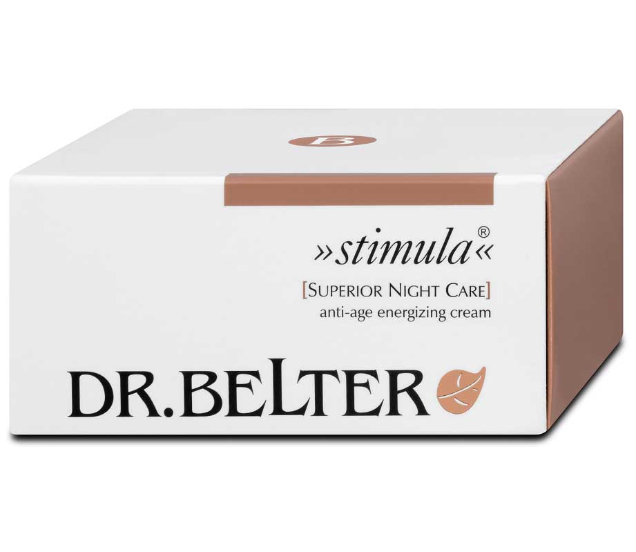 کرم ضدپیری و انرژی دهنده شب دکتر بلتر Dr Belter Stimula Energizing محصولی باکیفیت و حاوی مجموعه ای از عصاره های طبیعی به همراه فرمول توسعه یافته در لبه علم جهت جلوگیری از علائم پیری زودرس، لیفتینگ و بازسازی تولید کلاژن و الاستین پوست در زمان استراحت در شب می باشد. کرم انرژی دهنده استیمولای دکتر بلتر حاوی فیتواستروژن (هورمون گیاهی) بدست آمده از سویا، گیاه یام وحشی، رازک و شبدر قرمز جهت برطرف کردن کمبود تولید هورمون های زنانه که با افزایش سن افتاد می افتد، است. عصاره های کلیدی دیگر کرم انرژی دهنده دکتر شامل موارد زیر است: