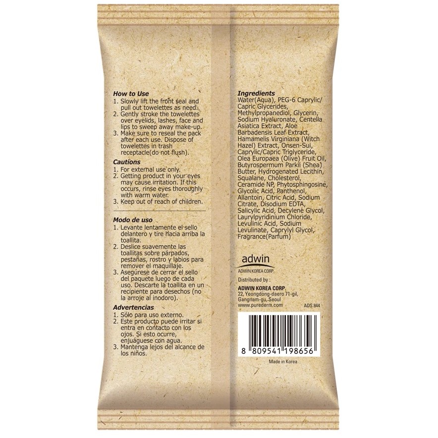 دستمال مرطوب پاک کننده آرایش پیوردرم Purederm Makeup Remover دارای فرمول وگن و حاوی عصاره گیاه سیکا (سنتلا آسیاتیکا) با خواص ترمیم کنندگی و بازسازی پوست است و از پوست در برابر آسیب های آینده محافظت می کند. دستمال مرطوب پیوردرم پاک کننده کامل انواع آرایش چشم، صورت و لب و آرایش ضد آب می باشد. مواد موثر دیگر موجود در دستمال پیور درم شامل آلوئه ورا جهت آبرسانی پوست، هاماملیس (فندق افسونگر) جهت تسکین و رفع التهاب و حساسیت پوست، روغن زیتون و شی باتر جهت تغذیه و لطافت پوست، امولسیون آبرسان گیاهی اسکوالن، پرو ویتامین B5 جهت ترمیم پوست و آلانتوئین جهت افزایش قابلیت جذب رطوبت توسط بافت پوست می باشد.