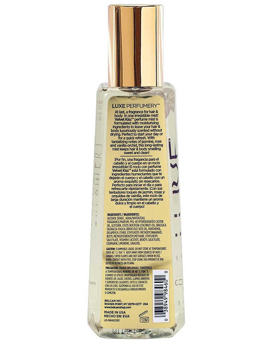 بادی اسپلش لوکس ولوت کیس Luxe Velvet Kiss حاوی رایحه دلپذیر و مناسب برای خوشبو کردن مو و بدن می باشد. بادی میست لوکس حاوی روغن های مغذی از جمله روغن نارگیل و روغن دانه بروکلی جهت تغذیه و جلوگیری از خشکی پوست و مو و ویتامین E با خواص آنتی اکسیدانی و محافظت کنندگی می باشد. رایحه بادی اسپلش لوکس ولوت کیس در گروه نت های پودری و گلی قرار دارد و متشکل از نت های گل یاس، گل ارکیده، گل رز و وانیل است و حس تازه و شیرین دوست داشتنی طولانی مدت را برایمان به ارمغان می آورد.