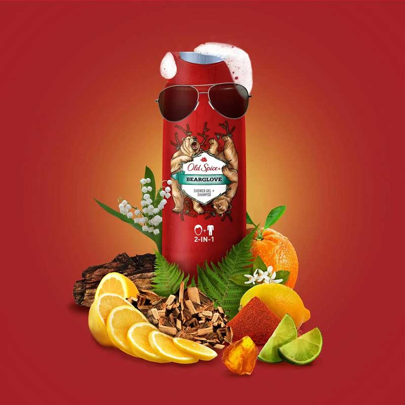 ژل دوش اولد اسپایس بیرگلاو Old Spice Bearglove حاوی فرمول پاک کننده و انرژی دهنده اولد اسپایس جهت پاکسازی آلودگی ها پوست و بوی عرق و احساس تمیزی کامل به همراه رایحه پرتقال، لیمو، لیموی سبز، زعفران، کهربا، گل زنبق دره، شکوفه پرتقال، گلسنگ و رایحه های چوبی می باشد. ژل دوش اولد اسپایس بیرگلاو دارای فرمول 2 در 1 و مناسب برای استفاده بدن و مو است و همراه با رایحه شاداب کننده با ماندگاری طولانی مدت، حس تمیزی و تازگی در طول روز را به ارمغان می آورد.