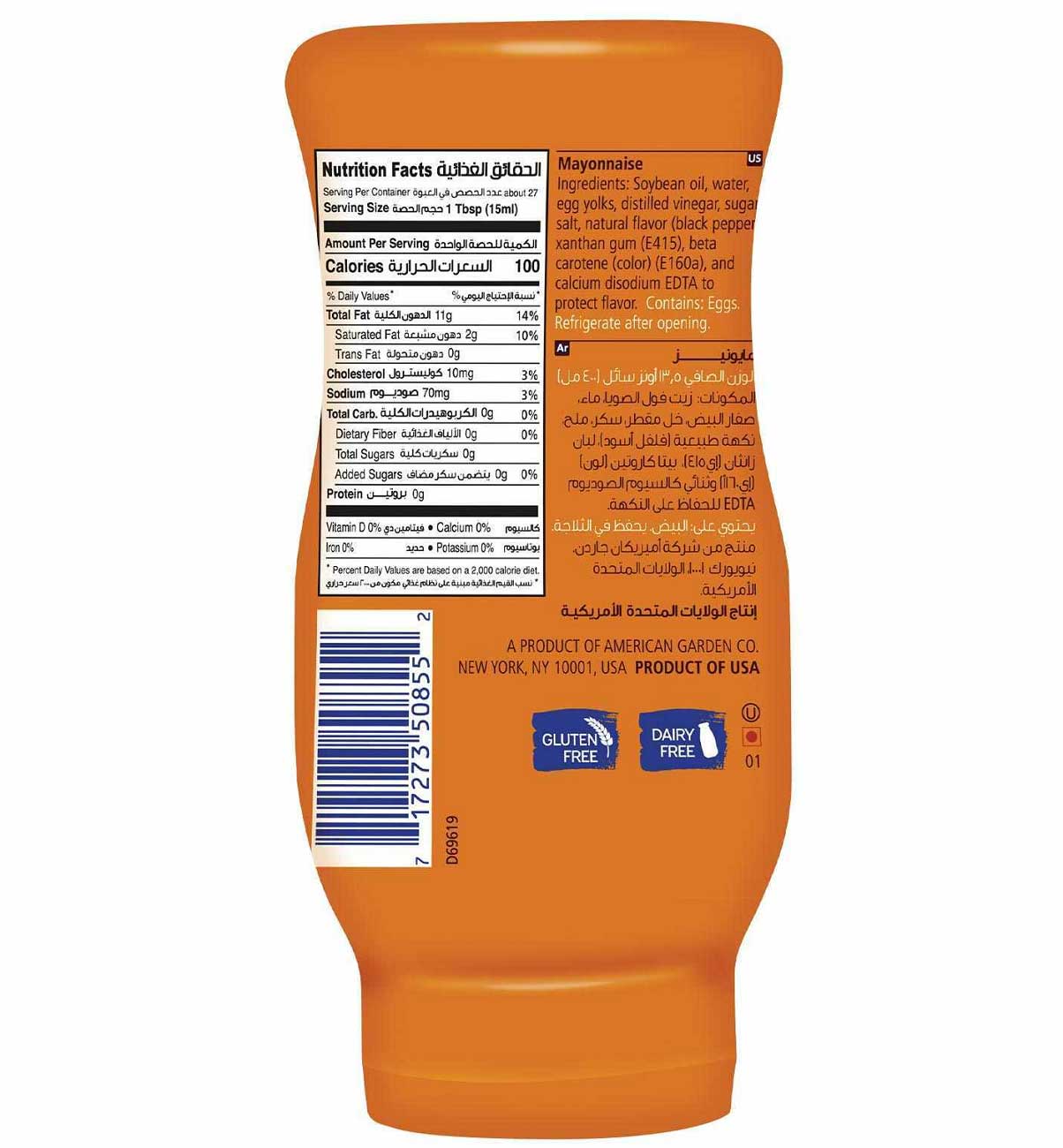 سس مایونز امریکن گاردن American Garden Real Mayonnaise تهیه شده از باکیفیت ترین مواد طبیعی تحت استانداردهای روز آمریکا و بدون رنگ و طعم دهنده مصنوعی می باشد.