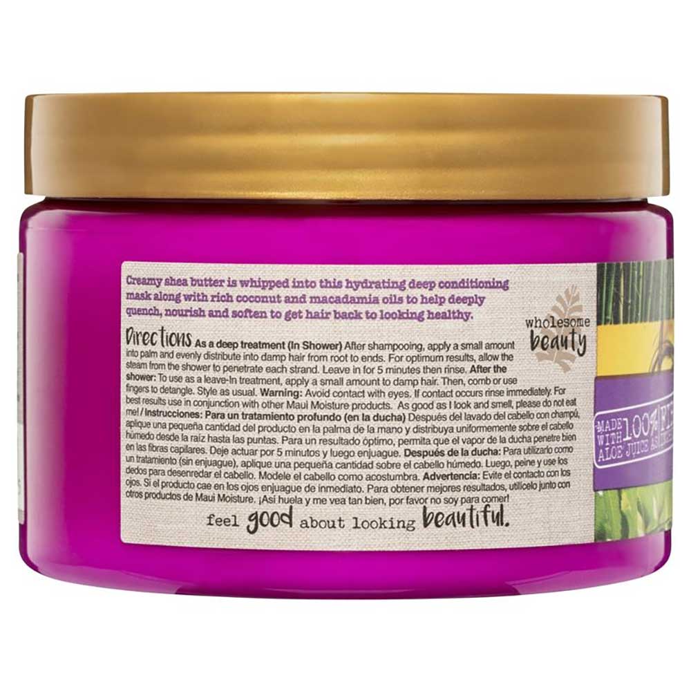 ماسک آبرسان موی شی باتر مائوئی مویسچر Maui Moisture Shea Butter محصولی باکیفیت و حاوی شی باتر کرمی به همراه روغن نارگیل غنی و روغن ماکادمیای (فندق استرالیایی) خالص جهت تغذیه و آبرسانی عمیق مو و احیای سلامتی آن می باشد. این فرمول به طور عمیق رطوبت از دست رفته موهای خشک را مجددا پر می کند و نرمی و شادابی موهای آسیب دیده را احیا می کند، نتیجه موهایی سالم و سرزنده با نمای شاداب و نرم می باشد. ماسک موی شی باتر مائوئی مویسچر فاقد سولفات، سیلیکون، پارابن و گلوتن است و فرمول کاملا گیاهی و وگن دارد.
