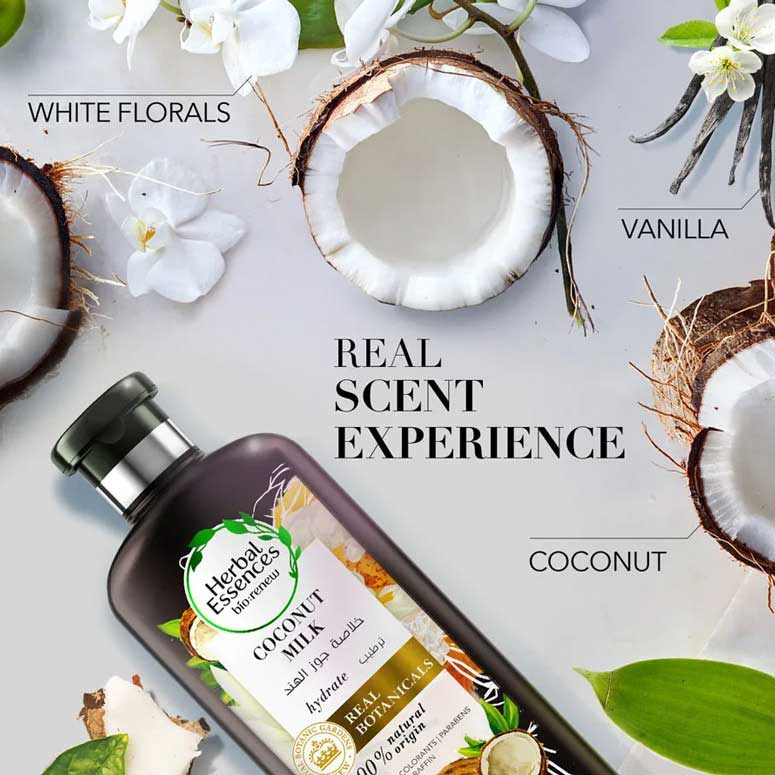 نرم کننده موی آبرسان شیر نارگیل هربال اسنسز Herbal Essences Coconut Milk حاوی بیش از 90 درصد عصاره های طبیعی امضا شده توسط پژوهشگاه معروف باغ های گیاه شناسی سلطنتی کیو لندن با بیش از 260 سال سابقه جهت آبرسانی قوی مو، شانه کشی آسان موها، ایجاد موهایی نرم و ابریشمی و محافظت در برابر آسیب دیدگی می باشد. نرم کننده موی هربال اسنس حاوی شیر نارگیل جهت آبرسانی و تغذیه مو، عصاره گل ارکیده غنی از آنتی اکسیدان های مقابله کننده با رادیکال های آزاد آسیب زننده به مو، عصاره ابریشم ذرت جهت نرمی مو، عصاره جلبک دریایی کلپ جهت ترمیم و محافظت از مو و همچنین آلوئه ورا جهت آبرسانی و حفظ شادابی موها می باشد. فرمول بدون پارابن و رنگ مصنوعی و رایحه دلپذیر نارگیل، گل های سفید و وانیل محصولی کامل و دوست داشتنی را به ارمغان آورده است.
