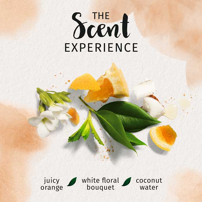 رایحه پرتقال آبدار، میوه های سفید و آب نارگیل