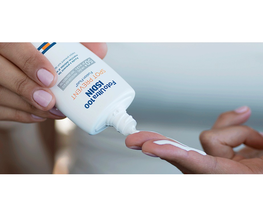 فلویید ضدآفتاب و ضد لک ایزدین Isdin Spot Prevent SPF50 دارای فرمول ویژه با سه برابر محافظت کنندگی قوی تر از حداقل معیار لازم برای SPF50 است و با ایجاد سد دفاعی از ایجاد لک ناشی از پرتوهای آفتاب UVA و UVB جلوگیری می کند. فلویید ضدآفتاب ایزدین دارای بافت سبک با جذب شوندگی فوری است که به وسیله گرما و استحکاک ناشی از ماساژ روی صورت به سرعت آب شده و جذب پوست می شود و شادابی و سبکی کامل را به وجود می آورد. ضدآفتاب ایزدین همچنین حاوی هیالورونیک اسید جهت آبرسانی قوی پوست است و به کمک بافت سبک و بدون چربی به پوست اجازه تنفس داده و احساس شادابی را به همراه محافظت کنندگی به ارمغان می آورد. این فرمول همچنین حاوی آلانتوئین جهت افزایش قابلیت جذب رطوبت پوست و احساس لطافت و نرمی پوست است. ضدآفتاب Spot Prevent ایزدین برای جلوگیری از لک های ناشی از آفتاب، لک های حاملگی و لک های ناشی از جوش، خراش و بعد از لیزر گزینه ای بسیار مناسب است.