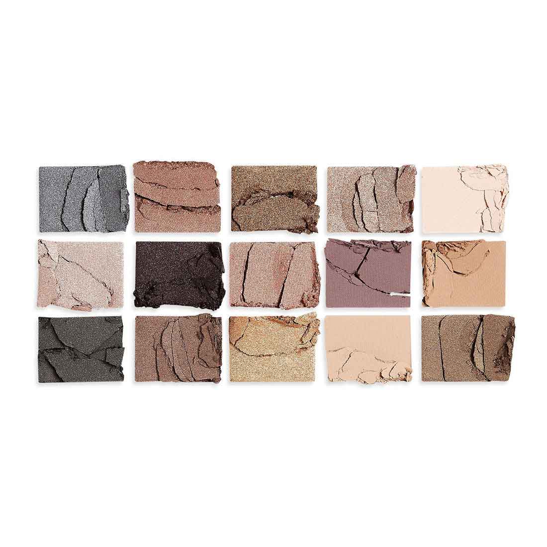 پالت سایه چشم رولوشن ریلودد Revolution Reloaded Basic Mattes دارای 15 رنگ باکیفیت و درخشنده در رنج رنگ های نود، کرمی، قهوه ای و دودی می باشد.