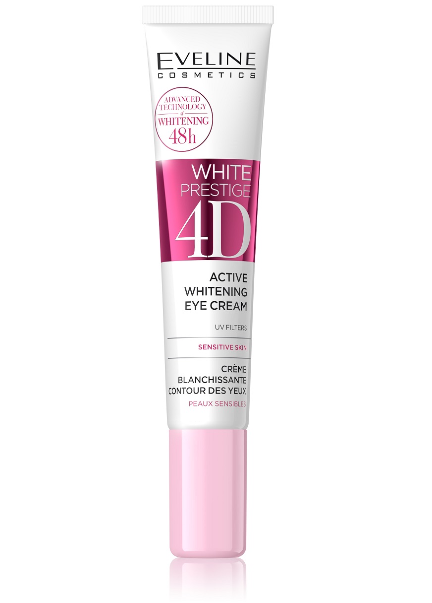کرم روشن کننده دور چشم اولاین وایت پرستیژ Eveline White Prestige 4D دارای فناوری الهام گرفته از لیزر درمانی جهت افزایش روشنایی پوست در چهار بعد شامل: روشن کنندگی پوست، افزایش شفافیت و یکنواختی پوست، جلوگیری از ایجاد لک و بهبود شرایط کلی پوست می باشد. کرم دور چشم وایت پرستیژ حاوی فناوری FRACTO2 ILLUMI LASER عمل کننده حرفه ای مانند لیزر درمانی به همراه کمپلکس Lumiwhite جهت روشن کنندگی تیرگی های دور چشم، هموار کنندگی و کاهش لک پوست است. علاوه بر این هیالورونیک اسید جهت آبرسانی قوی و کمپلکس Matrixyl3000 جهت افزایش تولید کلاژن و الاستین و سفتی و فرم دهی ناحیه کانتور چشم به این ترکیب اضافه شده است.