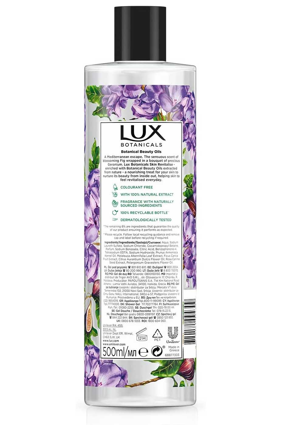 ژل دوش انجیر و گل شمعدانی لوکس Lux Skin Revitalise حجم 500 میلی لیتر