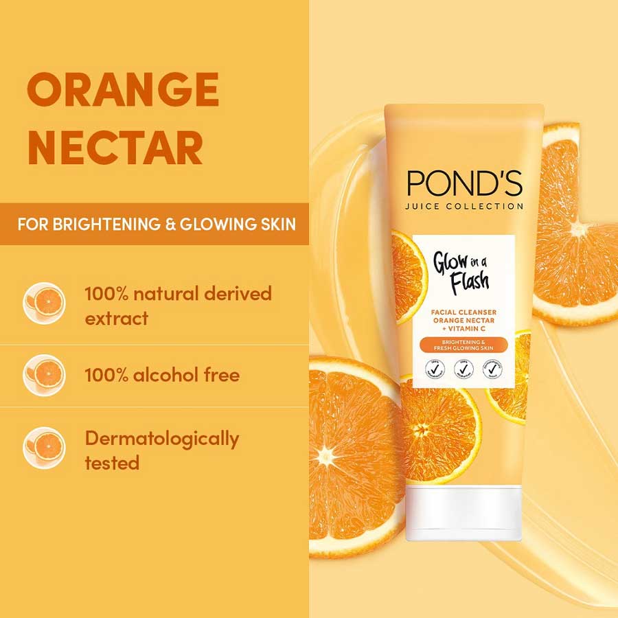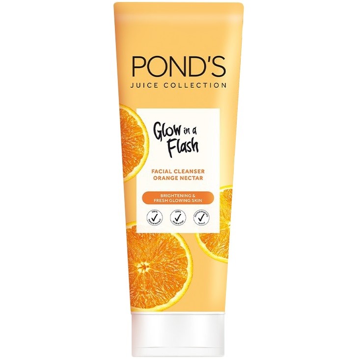 فوم شوینده و روشن کننده پرتقال پوندز Ponds Glow in a Flash Orange حاوی عصاره ها و مواد موثر پاک کننده طبیعی جهت پاک کردن آلودگی های روزانه پوست و آرایش و ایجاد نمای روشن و درخشان صورت می باشد. فوم شوینده پوندز حاوی عصاره طبیعی پرتقال جهت روشن کنندگی و شفافیت پوست است که همراه با ویتامین C با خواص روشن کنندگی و انرژی بخشی و ویتامین B3 (نیاسین آمید) با خواص ضدلک، پوستی تمیز، درخشان و شفاف را به ارمغان می آورد. این فرمول برای انواع پوست مناسب بوده و بدون الکل و تست شده توسط متخصصین پوست می باشد.