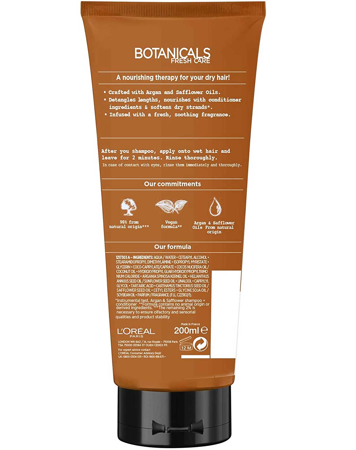 نرم کننده موی مغذی آرگان و گلرنگ لورال LOreal Argan Safflower دارای فرمول باکیفیت گیاهی و حاوی بیش از 98 درصد عصاره های طبیعی از لاین محصولات بوتانیک لورال جهت تغذیه موهای خشک، رفع خشکی و منظم کردن موها می باشد. نرم کننده موی بوتانیک فرش لورال حاوی روغن آرگان و روغن گلرنگ غنی از لیپیدهای تغذیه کننده و رطوبت رسان فیبر مو است، این فرمول با روغن نارگیل و روغن سویا جهت لطافت بخشی و تغذیه موها همراه شده است و حس موهایی خوشبو، تغذیه شده و منظم را به ارمغان می آورد.