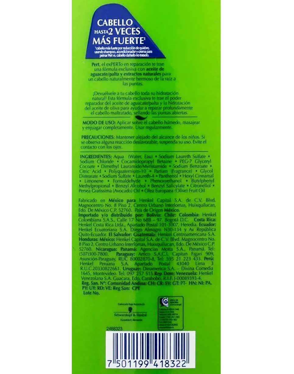 شامپو ترمیم کننده روغن زیتون و آووکادوی پرت Pert Reparacion حاوی عصاره های طبیعی جهت تغذیه و ترمیم عمیق موهای آسیب دیده و دو شاخه و احیای سلامتی، درخشندگی و استحکام موها می باشد. موهای بسیار آسیب دیده و درمان نشده استحکام ساختار خود را از دست می دهند و دچار شکنندگی، ضعیف شدن تدریجی، کدر شدن، بافت خشن و شانه کشی سخت می شوند. فرمول مغذی شامپو پرت حاوی روغن آووکادو غنی از ویتامین ها و مواد تغذیه کننده مو برای رطوبت رسانی، رفع وز و مراقبت عمیق مو و روغن زیتون برای ترمیم عمیق موهای دوشاخه و احیای درخشندگی و لطافت موها می باشد، در نتیجه لطافت و شانه کشی آسان موها احیا شده و مواد مغذی مورد نیاز فیبر مو تامین می گردد.