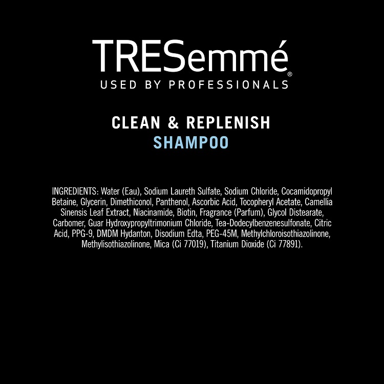 شامپو پاک کننده عمیق ترزمی TRESemme Deep Clean دارای فرمول دوگانه پاک کنندگی کامل بقایای مواد حالت دهنده مو از جمله ژل و اسپری مو به همراه رطوبت رسانی عمیق و لطافت بخشی موها می باشد. شامپو کلین اند رپلنیش ترزمی حاوی ویتامین سی جهت شادابی و درخشندگی موها است که با عصاره چای سبز غنی از آنتی اکسیدان ها با خواص تصفیه کنندگی و خالص سازی مو و پوست سر همراه شده است. این شامپو برای استفاده روزانه مناسب می باشد و موهایی نرم، تمیز و با طراوت را به ارمغان می آورد.