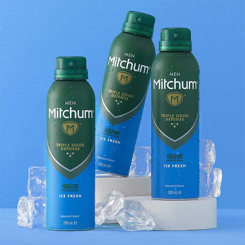 اسپری ضدتعریق آقایان میچام آیس فرش Mitchum Ice Fresh محافظت کننده قدرتمند 48 ساعته در برابر تعریق و بوی بد عرق به همراه احساس خشکی و آسودگی زیر بغل می باشد. اسپری ضدتعریق میچام دارای تکنولوژی محافظت سه گانه در برابر بوی بد عرق ناشی از گرما، تحرک و استرس است و توسط رایحه خنک کننده و تازگی بخش و فرمول بدون الکل، احساس تمیزی و آسودگی کامل را فراهم می کند.
