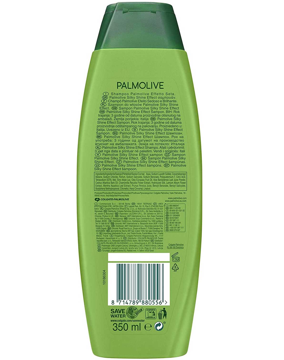 شامپو نرم کننده آلوئه ورای پالمولیو Palmolive Silky Shine Effect حاوی عصاره های کاملا طبیعی جهت آبرسانی، لطافت بخشی و احیای درخشندگی موها با جلوه ابریشمی می باشد. شامپو سیلکی شاین حاوی عصاره آلوئه ورا جهت آبرسانی، شادابی و حفظ رطوبت موها می باشد، این فرمول با احیای رطوبت موها باعث ایجاد موهای سالم لطیف می شود. دیگر عصاره های طبیعی شامپو آلوئه ورای پالمولیو شامل موارد زیر است: