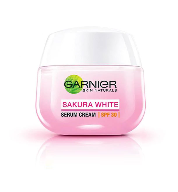 کرم روشن کننده روز شکوفه های گیلاس گارنیه Garnier Sakura White حاوی عصاره های طبیعی جهت افزایش روشنایی پوست با نمای صورتی لطیف و کاهش لک و نقاط تیره می باشد. کرم روشن کننده گارنیه حاوی عصاره شکوفه های گیلاس ژاپنی برای لطافت بخشی و روشن کنندگی پوست با درخشندگی صورتی، سرم هیالورون برای آبرسانی قوی پوست و نیاسین آمید (ویتامین B3) برای کاهش و محو آثار لک و تیرگی پوست می باشد، علاوه بر این فیلترهای ضدآفتاب SPF30 محافظت کننده صورت در طول روز است و پوستی لطیف، آبرسانی شده و شفاف تر با درخشندگی زیبای صورتی خواهیم داشت.