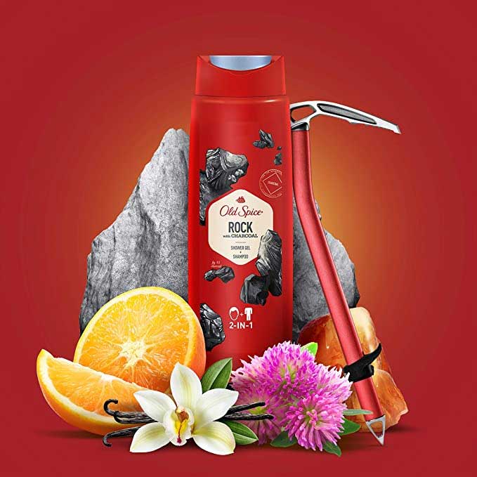 ژل دوش اولد اسپایس راک Old Spice Rock حاوی فرمول پاک کننده و انرژی دهنده اولد اسپایس با دو عملکرد شامپوی مو و بدن جهت پاکسازی آلودگی های مو و پوست و بوی عرق و احساس تمیزی کامل به همراه رایحه پرتقال، وانیل، کهربا و نت های گلی می باشد. این فرمول همچنین حاوی ذغال شارکل با خاصیت سم زدایی و تصفیه کنندگی برای احساس تمیزی کامل و طولانی مدت است، ژل دوش اولد اسپایس دارای رایحه شاداب کننده با ماندگاری طولانی مدت است و حس تمیزی و تازگی در طول روز را به ارمغان می آورد.