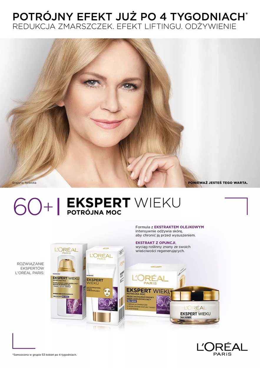 کرم ضدچروک شب لورال اکسپرت ایج LOreal Expert Age 60 حاوی عصاره های مغذی قوی برای بازسازی پوست های بالغ و شل و کاهش خطوط چروک می باشد. کرم ضدچروک اکسپرت ایج لورال حاوی عصاره میوه کاکتوس با خواص بازسازی کنندگی به همراه روغن های مغذی پوست از جمله روغن هسته زردآلو و روغن دانه برنج برای تغذیه عمقی می باشد. این فرمول همچنین حاوی آرژنین برای افزایش استحکام و سفتی پوست است. نتایج آزمایشگاهی برای یک دوره استفاده 4 هفته ای این نتایج را نشان داد: 94 درصد افراد اعلام کردند پوستشان به طور کامل تغذیه شده است، 83 درصد افراد اعلام کردند فرم کانتور صورت به صورت قابل ملاحظه ای بهبود یافته است و همچنین 34 درصد خطوط چروک پنجه کلاغی صورت کاهش یافته است.