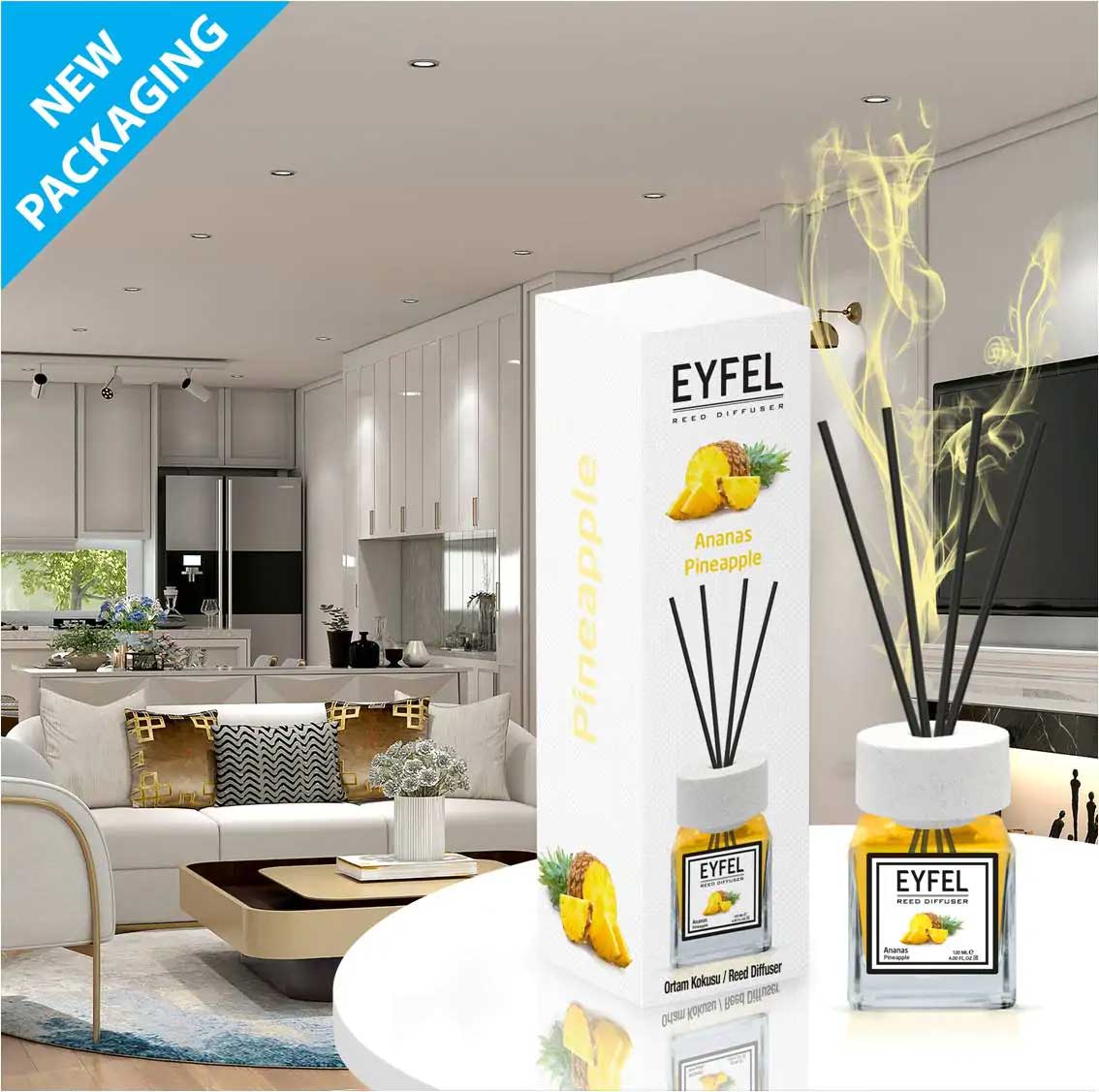 عطر خوشبوکننده اتاق ایفل رایحه آناناس Eyfel Pineapple دارای رایحه مطبوع و مناسب برای خوشبوکردن و ایجاد فضای آرامش بخش اتاق، محیط کار، هتل، پذیرایی، اتاق کنفرانس و غیره می باشد. می توان دکوراسیون خانه را با رایحه ویژه خود تزئین نمود و فضایی سرشار از آرامش را برای عزیزانمان پدید آوریم.