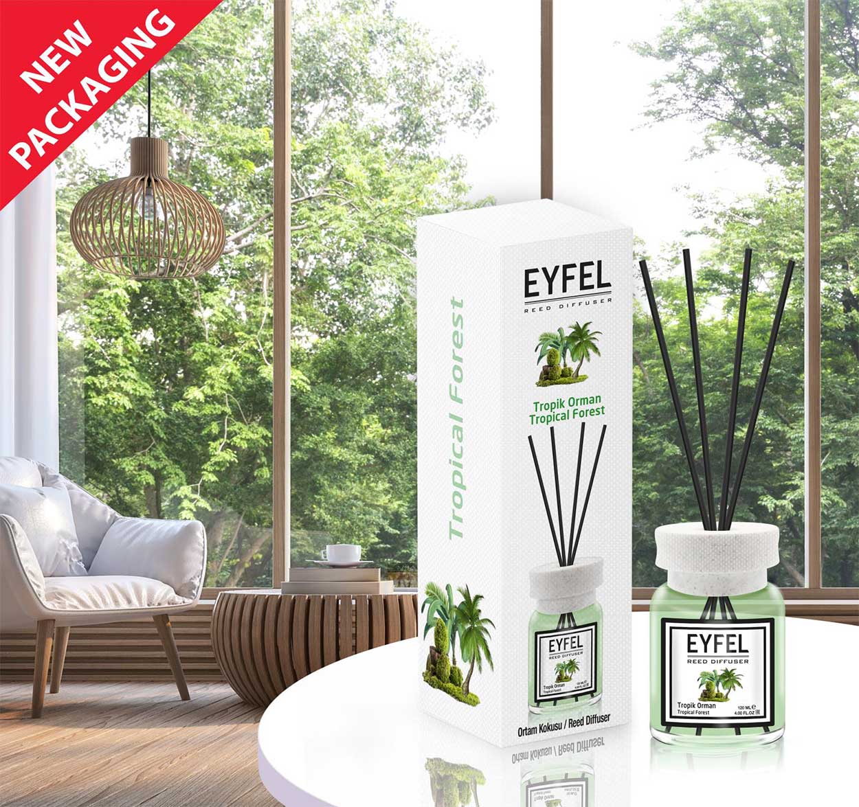 عطر خوشبوکننده اتاق ایفل رایحه جنگل های گرمسیری Eyfel Tropical Forest دارای رایحه مطبوع و مناسب برای خوشبوکردن و ایجاد فضای آرامش بخش اتاق، محیط کار، هتل، پذیرایی، اتاق کنفرانس و غیره می باشد. می توان دکوراسیون خانه را با رایحه ویژه خود تزئین نمود و فضایی سرشار از آرامش را برای عزیزانمان پدید آوریم.