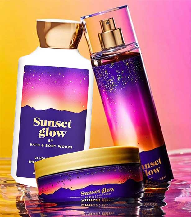 لوسیون بدن بث اند بادی ورکس Sunset Glow محصولی باکیفیت از برند بث اند بادی ورکس است که دارای رایحه دلپذیر نوشیدنی گازدار گیلاس، نارگیل و گل نیلوفر سفید با الهام از شب های گرم تابستان و شیرینی های خوشمزه و حس کمال بی نظیر از طلوع تا غروب خورشید می باشد. لوسیون بدن بث اند بادی ورکس حاوی شی باتر جهت تغذیه، آبرسانی و نرمی پوست بوده و علاوه بر این حاوی ویتامین E جهت محافظت کامل از پوست می باشد. استفاده از لوسیون بدن بث اند بادی ورکس با رایحه بسیار دلپذیر برای استفاده روزانه پس از استحمام بسیار خوشایند است.