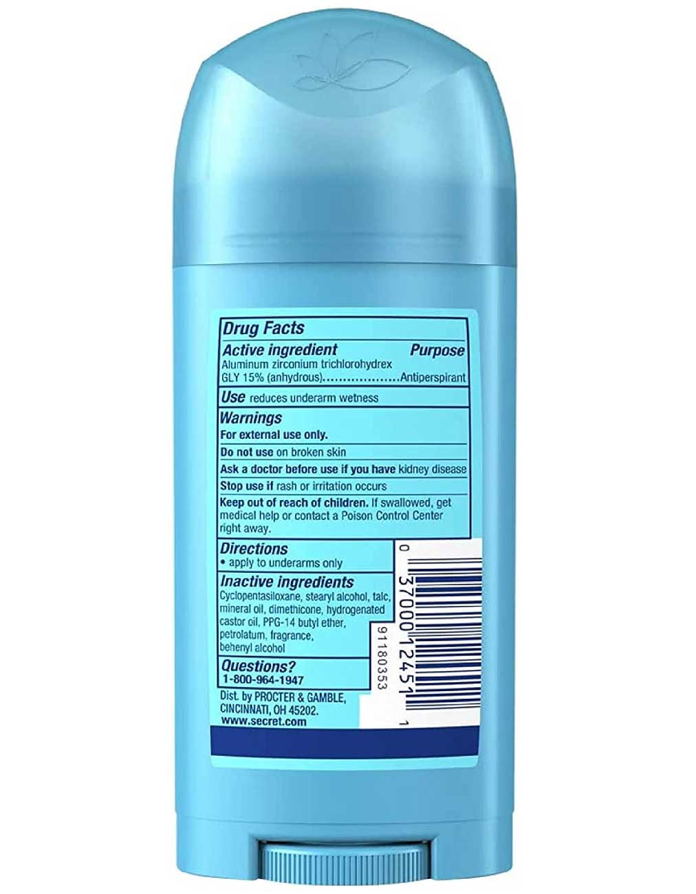 استیک ضدتعریق سکرت رایحه پودری Secret Powder Fresh دارای فرمول باکیفیت توسعه یافته توسط پزشکان زن متخصص پوست برای خنثی سازی 24 ساعته بو و عرق به همراه pH متعادل در تمام طول روز می باشد. استیک ضدتعریق سکرت بلافاصله پس از استفاده جذب شده و اثری از خود بر جای نمی گذارد، این فرمول به همراه رایحه دلپذیر پودری حس لطیف و تازه را به ارمغان می آورد و در طول روز پوستی تمیز و خوشبو خواهیم داشت.
