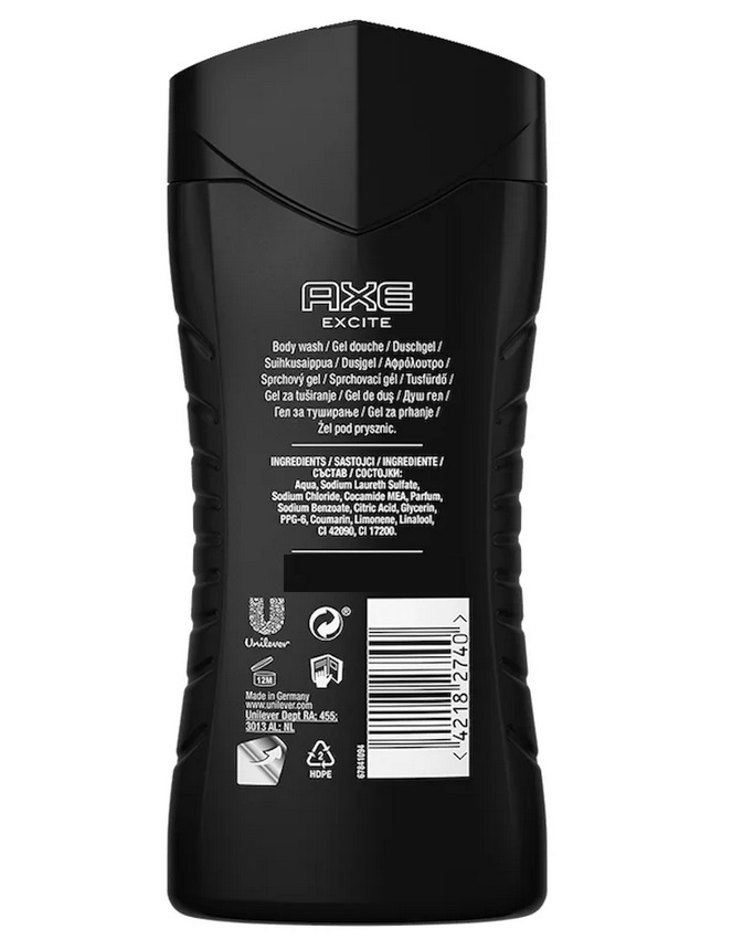 شامپو بدن آکس اکسایت Axe Excite دارای فرمول شاداب کننده و تازگی بخش است و ضمن پاک کردن آلودگی ها و باکتری های ایجاد کننده بوی عرق، احساس راحتی همراه با رایحه ماندگار 12 ساعته را فراهم می کند. شامپو بدن آکس اکسایت همچنین حاوی مواد موثر رطوبت رسان گیاهی و رایحه نارگیل تازه و فلفل سیاه است و حس پرانرژی و تازه را در وجودمان القا می کند.