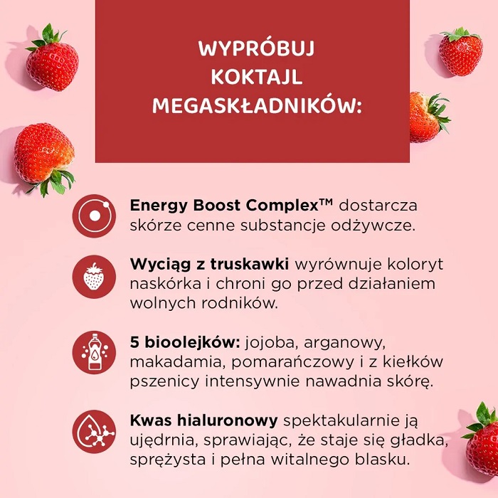 ماست آبرسان و هموارکننده بدن توت فرنگی اولاین Eveline Natural Strawberry دارای فرمول توسعه یافته بر مبنای 99 درصد عصاره ارگانیک توت فرنگی با عملکرد تغذیه و تقویت نوسازی سلولی پوست می باشد. آبرسان توت فرنگی اولاین دارای بافت مانند ماست برای آبرسانی قوی و پخش شوندگی آسان بر روی پوست بدن است و مانند لوسیون بدن رطوبت مورد نیاز پوست را تامین کرده و همراه با کمپلکس ویتامین های A، C، E و B با خاصیت ضدپیری و احیای درخشندگی طبیعی باعث تامین مواد مغذی پوست می شود. این ترکیب همچنین حاوی پنج روغن مغذی جوجوبا، آرگان، ماکادمیا، پرتقال و جوانه گندم برای بازسازی عمقی و ایجاد پوستی هموار و لطیف می باشد.