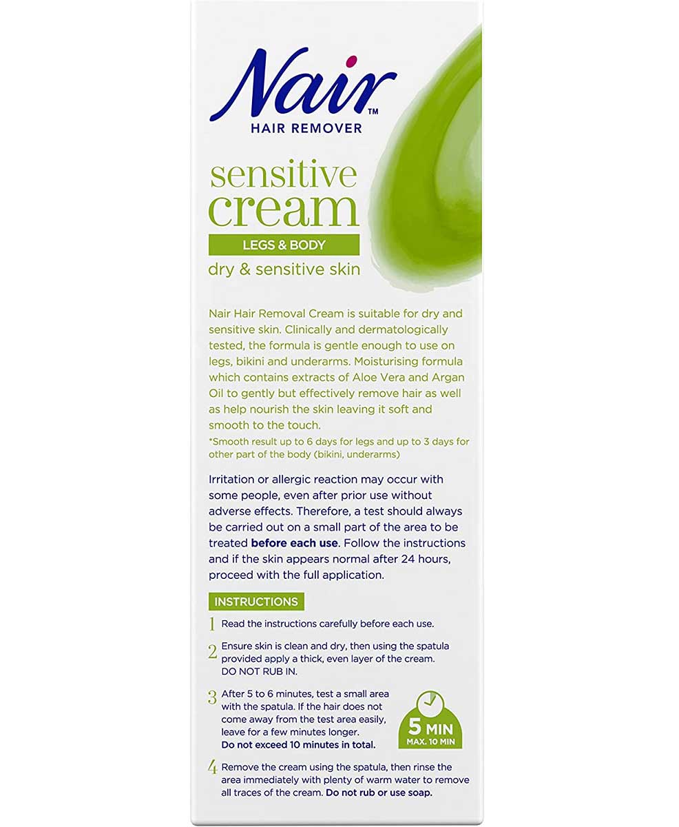 کرم موبر بدن پوست حساس نیر حاوی آلوئه ورا Nair Sensitive Cream دارای فرمول ملایم بر روی پوست و موثر همراه با مراقبت ویژه از پوست های خشک و حساس می باشد. کرم موبر بدن نیر حاوی عصاره آلوئه ورا برای تسکین پوست است که با روغن آرگان برای لطافت بخشی و و ایجاد پوستی ابریشمی پس از موزدایی همراه شده است.